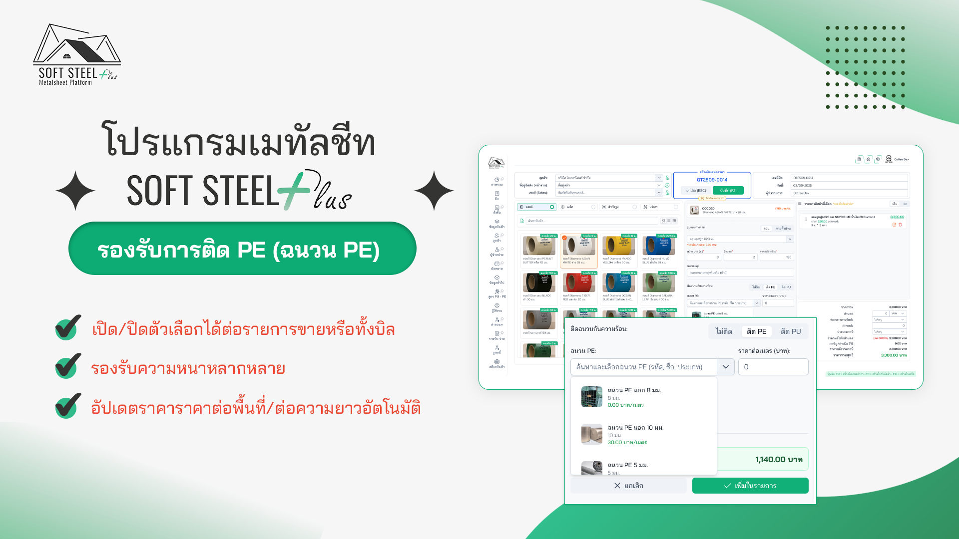 - เลือก/ไม่เลือก “ติด PE” ได้ต่อรายการขาย/แผ่น