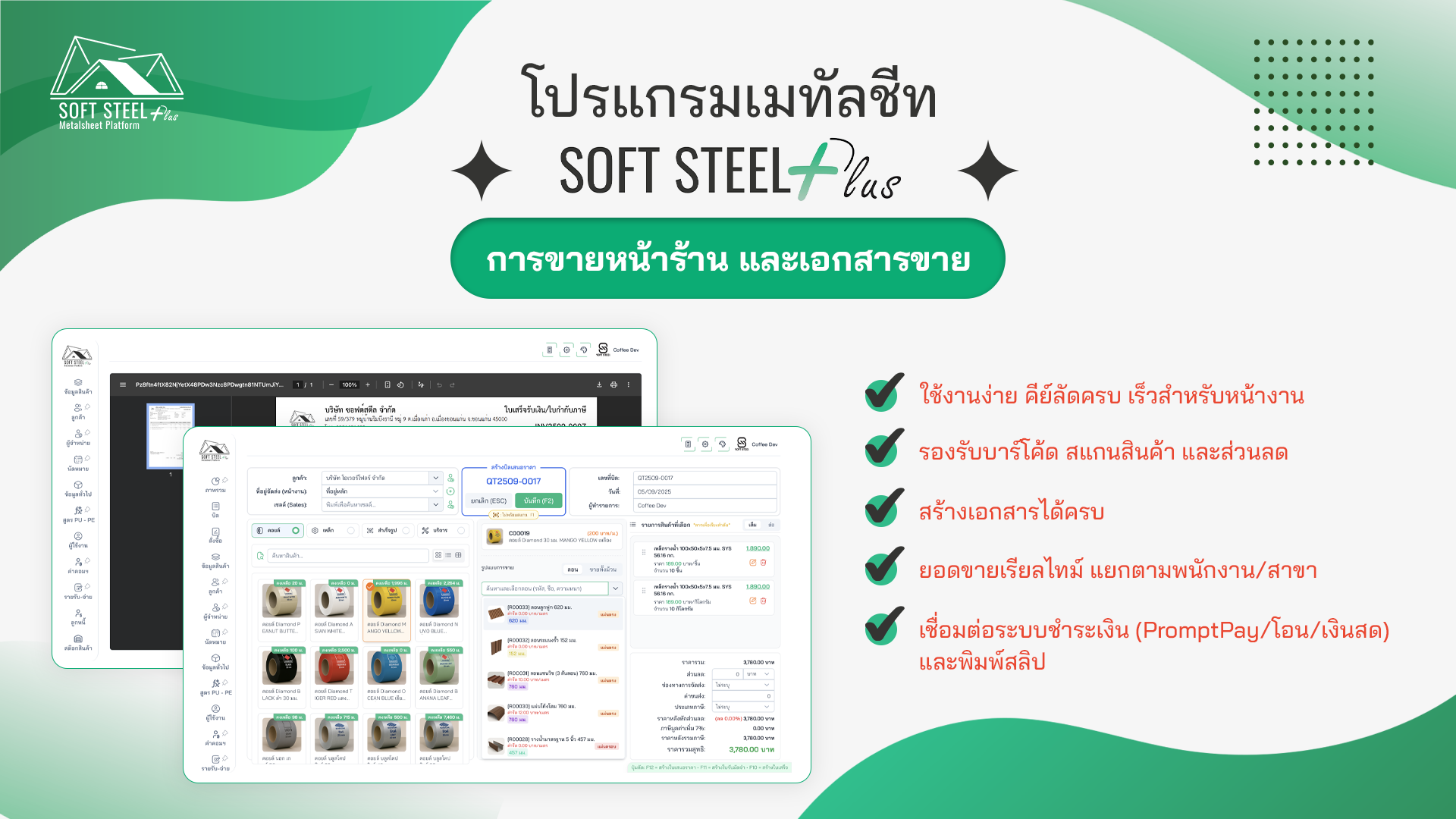 - ดูยอดขายเรียลไทม์ แยกตามพนักงาน/สาขา พร้อมสรุปรายงานประจำวัน
