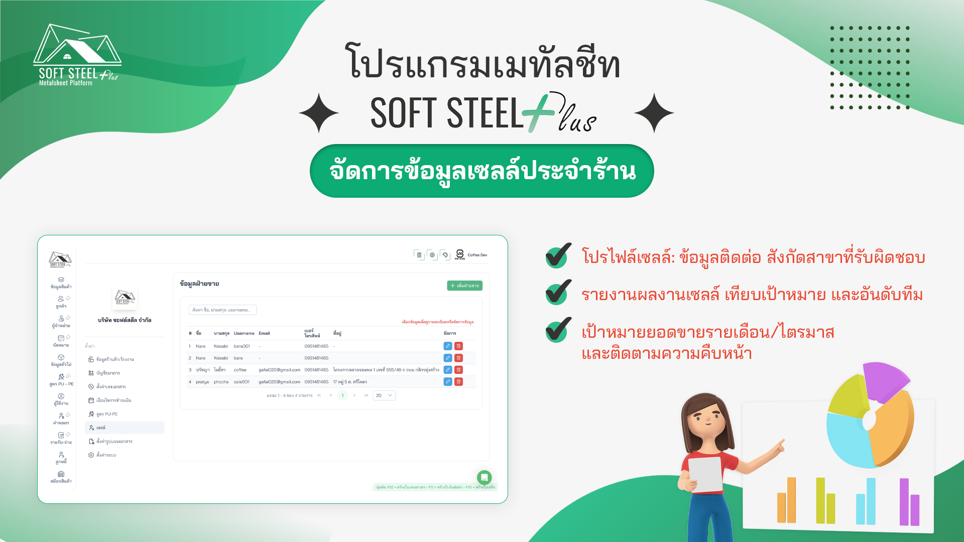 - เป้าหมายยอดขายรายเดือน/ไตรมาส และติดตามความคืบหน้า