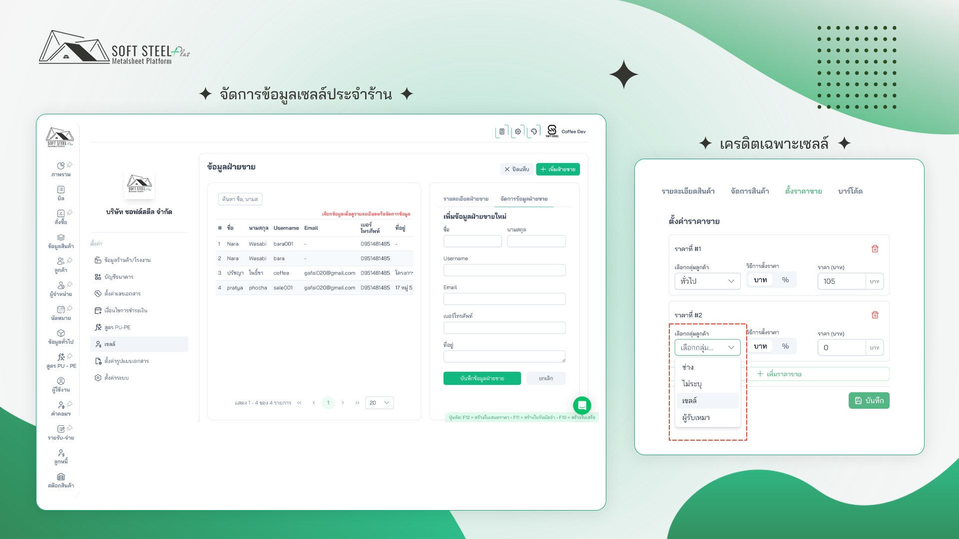 - ผูกลูกค้าประจำเพื่อสิทธิ์ราคา/เครดิตเฉพาะเซลล์