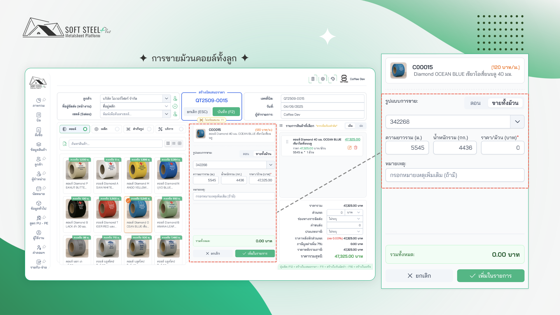 เลือกคอยล์ทั้งลูกออกบิลได้ทันที อัปเดตสต๊อกและต้นทุนเฉลี่ยอัตโนมัติ พร้อมเอกสารการขายครบถ้วน