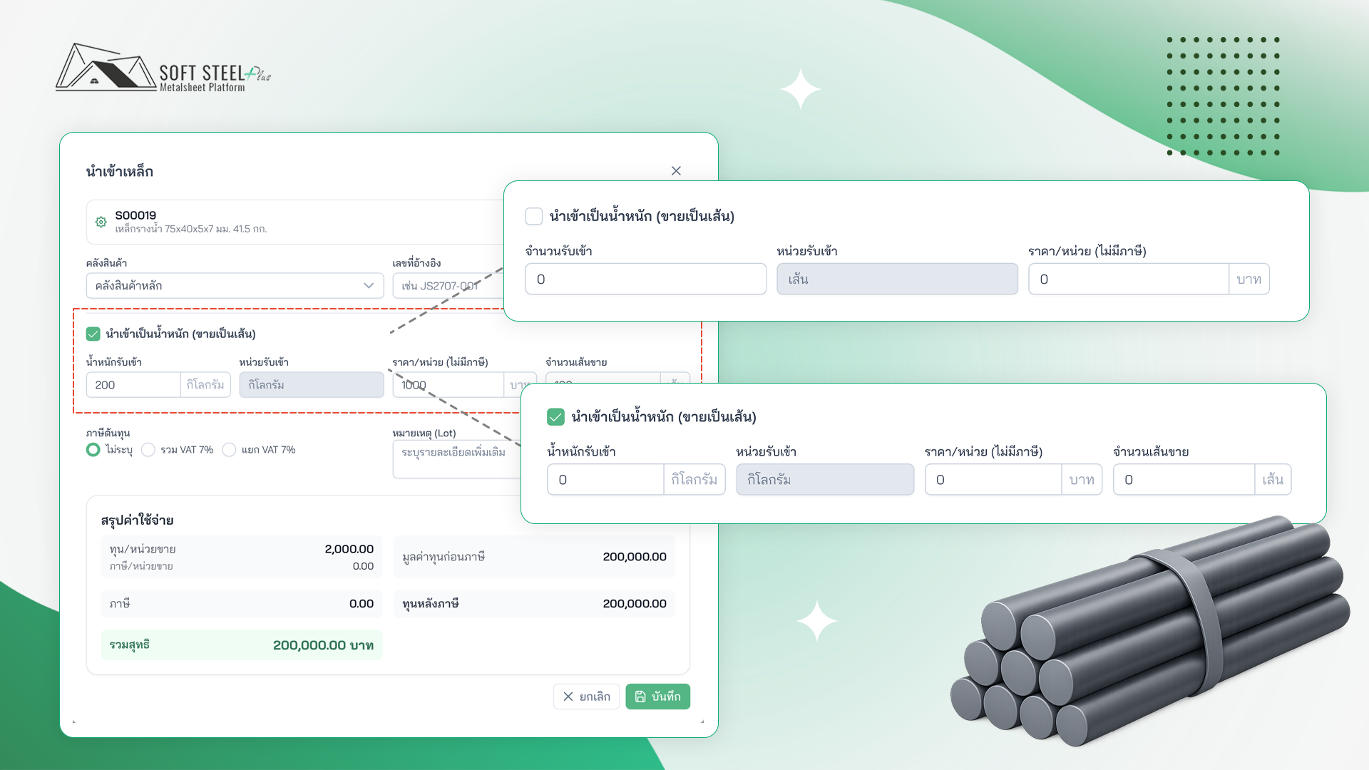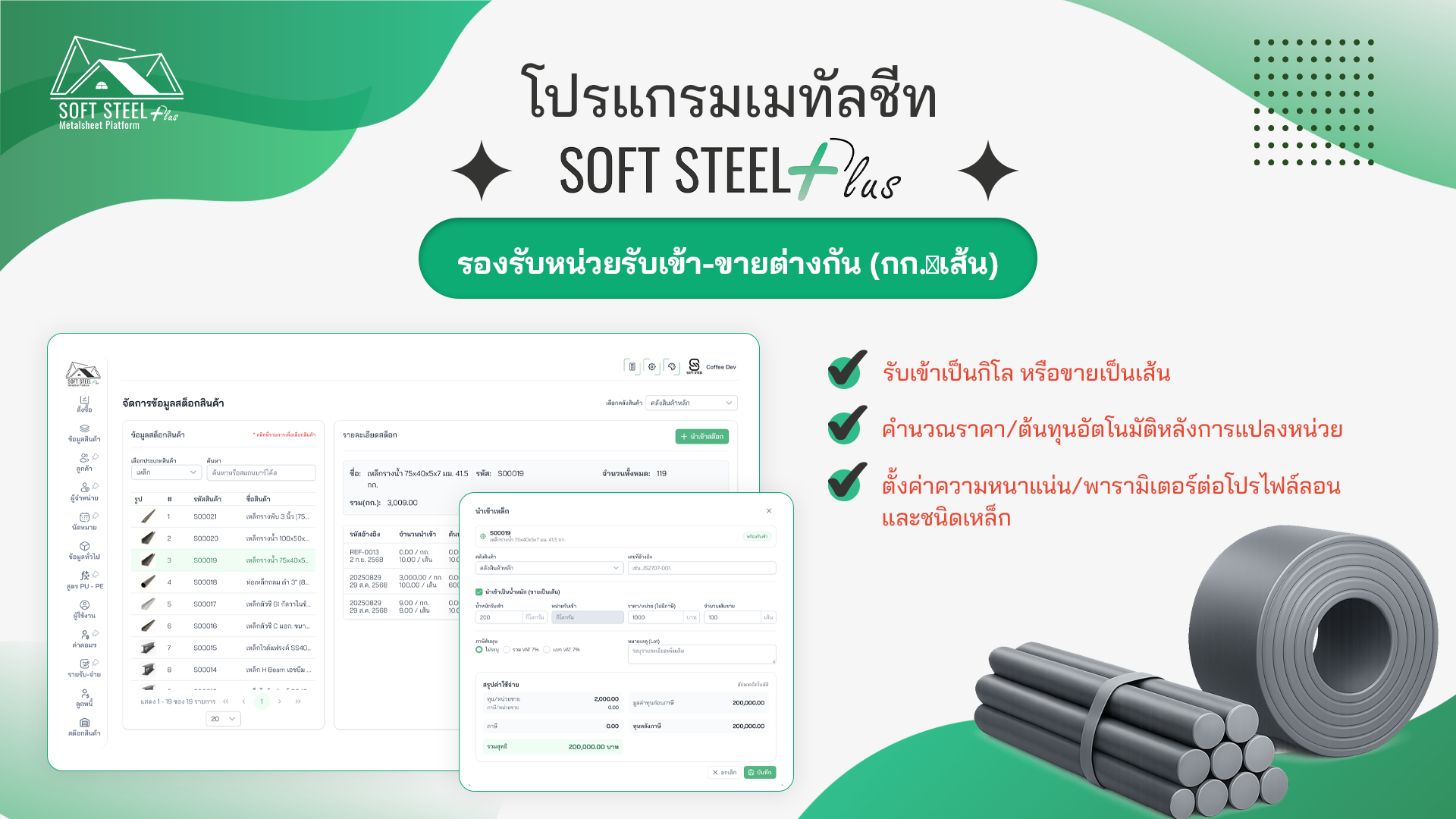 - สูตรแปลงหน่วยตามชนิดลอน/ความหนา/ความยาว ปรับได้เองต่อสินค้า